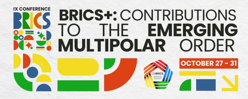 O Grupo de Estudos em BRICS da USP (GEBRICS-USP) convida você a participar da IX BRICS Conference, que será realizada online, entre os dias 27 a 31 de outubro de 2025, sob o tema: