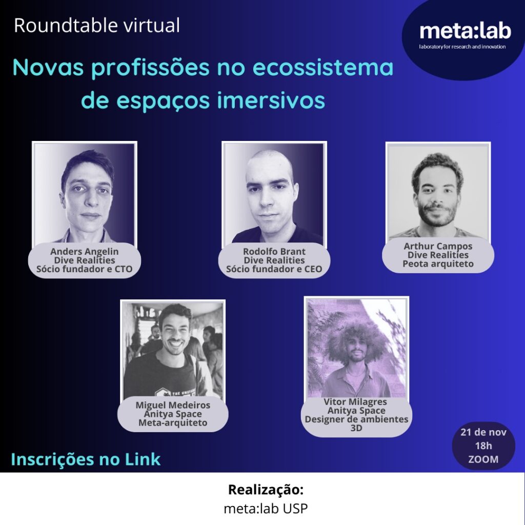 Nesta Roundtable iniciaremos uma série de conversas que ocorrerão nos próximos meses para compreender as novas áreas de atuação profissional que estão emergindo com a web 3.0. Nesta primeira vamos conversar sobre as experiências de empreendedores e profissionais que atuam no ecossistema de VR. As novas camadas de realidade (VR/AR/XR) já utilizadas em diversas soluções para educação, saúde, arquitetura, engenharia, cinema (para citar algumas), abrem novas funções de criação, desenvolvimento ou gestão em empresas do setor.